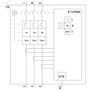 circuit breaker 3VA2 IEC Frame 1000 breaking capacity class M Icu=55 kA @ 415 V 3-pole, motor protection ETU550M, LSI, In=630 A overload protection Ir=250 A …630 A short-circuit protection Isd=1.2….