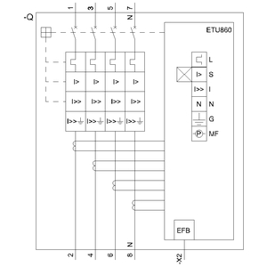 circuit breaker 3VA2 IEC Frame 1000 breaking capacity class H Icu=85 kA @ 415 V 4-pole, line protection ETU860, LSIG, In=800 A overload protection Ir=320 A…800 A short-circuit protection Isd=0.6..10…