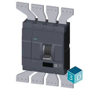 circuit breaker 3VA2 IEC Frame 1250 breaking capacity class M Icu=55 kA @ 415 V 4-pole, line protection ETU860, LSIG, In=1250 A overload protection Ir=500 A …1250 A short-circuit protection Isd=0.6..10x In, Ii=1.5..10x In neutral conductor protection adjustable (OFF, up to 100%) ground-fault protection, can be switched off Ig=0.2… 1 x In, tg=0.05-0.8s bus connectors broadened