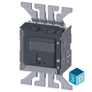 draw-out molded case circuit breaker with guide frame and PSS frame 1600; with RTC and 4AUX trip alarm switch S24; Icu “M” Icu=55kA @ 415V, 4-pole, left ETU350, LSI, In=1000A rotary coding switch Ir=400…1000A Isd=1…10xIn, Ii=1.5…15xIn N conductor protec. adjustable OFF, 50%, 100%, 200% front bus connector offset