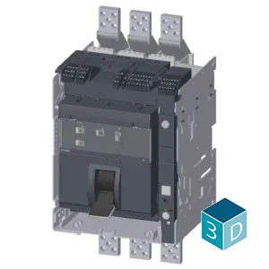 draw-out molded case circuit breaker w. handle with guide frame and PSS frame 1600; 4AUX and trip alarm switch S24; Icu “M” Icu=55kA @ 415V, 3-pole ETU320, LI, In=1600A rotary coding switch Ir=640…1600A Ii=1.5…15 x In N conductor protec. adjustable opt. w. ext. CT; up to 200% straight bus connector extended