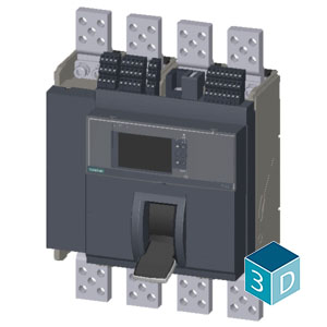 fixed-mounted molded case circuit breaker w. handle frame 1600; 4AUX and trip alarm switch S24; Icu “H” Icu=85kA @ 415V, 4-pole, left ETU650, LSI, In=1600A display, meas., comm. function Ir=640…1600A Isd=0.6…10xIn, Ii=1.5…15xIn N conductor protec. adjustable OFF, 50%, 100%, 150%, 200% straight bus connector extended
