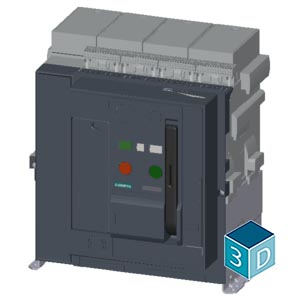 AC non-automatic air circuit breaker 3WA, fixed-mounted version, IEC 60947-2, size 1, 4-pole, N pole on right, In=2500 A up to 1000 V AC 50/60 Hz, breaking capacity E, Icc=85/50 kA at 690/1000 V, with…