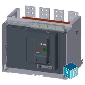AC non-automatic air circuit breaker 3WA, withdrawable version, with guide frame, IEC 60947-2, size 2, 4-pole, N pole on right, In=2000 A up to 690 V AC 50/60 Hz, breaking capacity H, Icc=100/85 kA at…