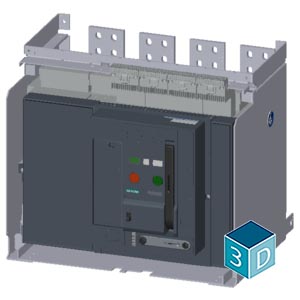 AC non-automatic air circuit breaker 3WA, withdrawable version, with guide frame, IEC 60947-2, size 2, 4-pole, N pole on right, In=2000 A up to 1150 V AC 50/60 Hz, breaking capacity E, Icu=85/50 kA at…