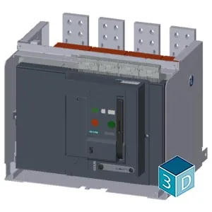 AC non-automatic air circuit breaker 3WA, withdrawable version, with guide frame, IEC 60947-2, size 2, 4-pole, N pole on right, In=2500 A up to 690 V AC 50/60 Hz, breaking capacity H, Icc=100/85 kA at…