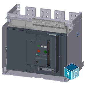 AC non-automatic air circuit breaker 3WA, withdrawable version, with guide frame, IEC 60947-2, size 2, 4-pole, N pole on right, In=2500 A up to 1150 V AC 50/60 Hz, breaking capacity E, Icu=85/50 kA at…