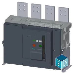 AC non-automatic air circuit breaker 3WA, fixed-mounted version, IEC 60947-2, size 2, 4-pole, N pole on right, In=3200 A up to 690 V AC 50/60 Hz, breaking capacity S, Icc=66/50 kA at 500/690 V, withou…