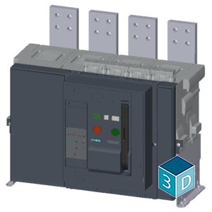 fixed-mounted circuit breaker, IEC 60947-2, size 1, 4-pole, N pole on right, In=3200 A up to 690 V AC 50/60 Hz, breaking capacity M Icu=85/66 kA at 500/690 V, tripping unit ETU300 LSI G optimized for standard applications, without display, basic protection LT, ST, INST, GF, including protection of the N conductor (internal neutral point sensor available), trip alarm switch (1 x CO), front connection double hole,