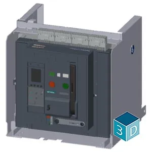 withdrawable circuit breaker, with guide frame, IEC 60947-2, size 2, 3-pole, In=3600 A up to 690 V AC 50/60 Hz, breaking capacity M Icu=85/66 kA at 500/690 V, tripping unit ETU600 LSIG upgradeable, color display, Bluetooth, USB interface, basic protection LT, ST, INST, GFx, neutral conductor protection requires an external neutral point current sensor, trip alarm switch (1 x CO), connection at rear flange, guide frame with shutter, without position signaling switch,