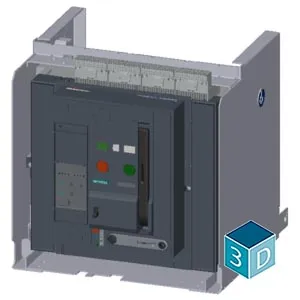 withdrawable circuit breaker, with guide frame, IEC 60947-2, size 1, 3-pole, In=3600 A up to 690 V AC 50/60 Hz, breaking capacity H Icu=100/85 kA at 500/690 V, tripping unit ETU300 LSI G optimized for…