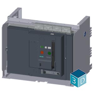 AC non-automatic air circuit breaker 3WA, withdrawable version, with guide frame, IEC 60947-2, size 2, 4-pole, N pole on right, In=4000 A up to 690 V AC 50/60 Hz, breaking capacity S, Icc=66/50 kA at…