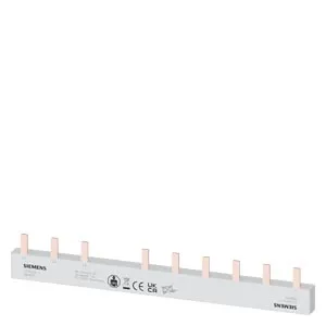 Pin Busbar, 10mm2 connection: 3p (RCCB N-right) 1x RCCB 4-pole + 6x MCB 1-pole touch protected 10 MW fixed length