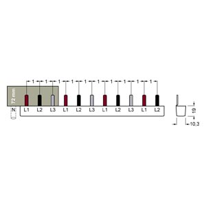 Pin busbar, 16 mm2 connection: 3-phase/+ 8x phase touch-safe for 1FI, 4-pole, NLI+8LS, 1-pole