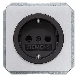 DELTA profil, silver SCHUKO socket outlet 10/16 A 250 V Black bezel With screwless Connection terminals with increased touch protection Cover plate 65x 65 mm