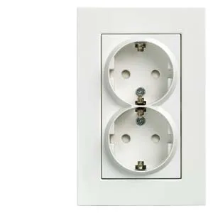 DELTA miro SCHUKO double socket outlet with frame 10/16 250 V with/without screw-type terminals with increased touch protection titanium white