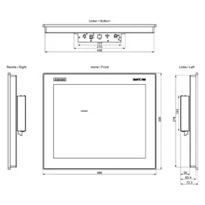 SIMATIC IFP1900 V2 Extended 5:4 19″ multi-touch display (5:4) with 1280x 1024 pixel resolution, built-in unit for 24 V DC; DisplayPort; can be placed up to 100 m away HDBaseT; USB on the rear side; standard Siemens design