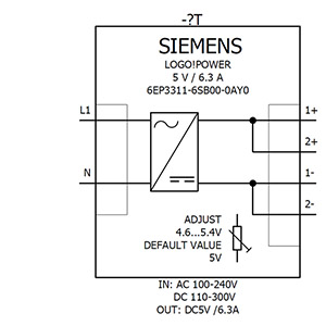 LOGO!POWER 5 V / 6.3 A stabilized power supply input: 100-240 V AC output: 5 V DC / 6.3 A