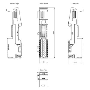 SIMATIC ET 200SP, BaseUnit BU20-P16+A0+2B, BU-TYPE U0, Packaging Unit: 10 Pieces, Push-in terminals, w/o AUX-terminals, bridged to left BU, WxH: 20mm x 117mm