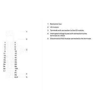 SIMATIC ET 200SP, BaseUnit BU15-P16+A10+2B, BU type A0, Push-in terminals, with 10 AUX terminals, bridged to the left, WxH: 15 mmx141 mm