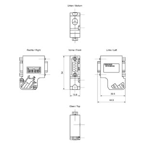 SIMATIC DP, Connection plug for PROFIBUS up to 12 Mbit/s 35 degree cable outlet, Insulation displacement method FastConnect, With PG receptacle 15.8x 54x 39.5 mm (BxHxD)
