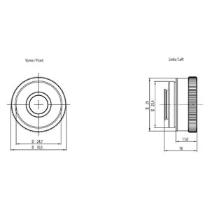 Focal length doubler 17.9 mm Length, 30.5 mm diameter, with C-thread for inserting between lens and camera for extension of the focal length by a factor of 2.