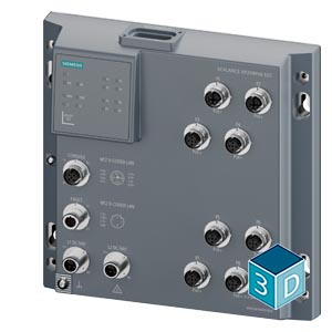 SCALANCE XP208PoE EEC, IP65, managed layer 2 IE switch, IEC 6 2443-4-2 certified; 6x 10/10 0 Mbps, 2x 1000 Mbps, M12 ports, 802.3 at 8×30 W (max. 240 W) LED diagnostics, error signaling contact, redun…