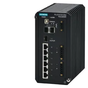 RUGGEDCOM RSG909R is a 9 port industrially hardened, fully managed Ethernet switch featuring an integrated HSR/PRP RedBox for use in harsh industrial environments. The product has 3x 1Gbit/s SFP slots…