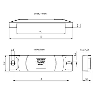SIMATIC RF680T PPS, 130 x 32 x 15 mm ISO 18000-63, EPC Class 1 Gen 2 frequency 865 to 928 MHz NXP UCODE G2XM 240 bits (30 bytes) EPC ID 512 bits (64 bytes) user memory fixing by mounting on metal, hea…