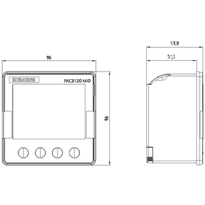 SENTRON PAC3120, calibrated according to MID, LCD 96 x 96 mm Power Monitoring Device, control panel instrument with measurement of electrical variables, protocol: Modbus RTU, with graphical display, Ue 230/400 V, 50 Hz, Ie x/1 A or x/5 A AC, additional optional auxiliary power supply 100 … 250 V +-10% AC/DC screw terminal