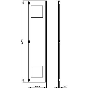 SIVACON, door half, left, with cutout for filter fan, with ventilation openings, H: 2200 mm, W: 450 mm, RAL 7035, protection class 1
