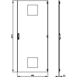 SIVACON, door, right, with cutout for filter fan, with ventilation openings, H: 2200 mm, W: 900 mm, RAL 7035, protection class 1