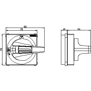 handle with masking plate EMERGENCY-STOP illuminated size 75x 75, for shaft 8x 8, test-0-I, handle size 45mm accessory for 3KD size 1 and 2, 3KF size 1