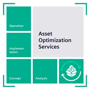 Asset Optimization Services Operation spare parts supply Provision of a defined spare parts package based on an individual customer offer. The spare parts are the property of Siemens. The scope of services is the provision of components with defined delivery time and place of delivery for an agreed period. Implementation of cyclic and standardized inventory analyses to consider the product lifecycle.
